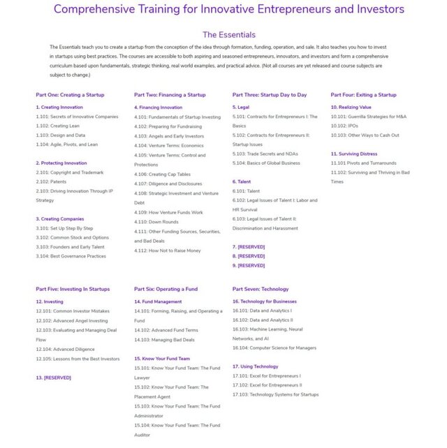 Creating Innovation | Protecting Innovation | Creating Companies | Financing Innovation | Legal | Talent | Realizing Value | Surviving Distress | Investing | Fund Management | Technology